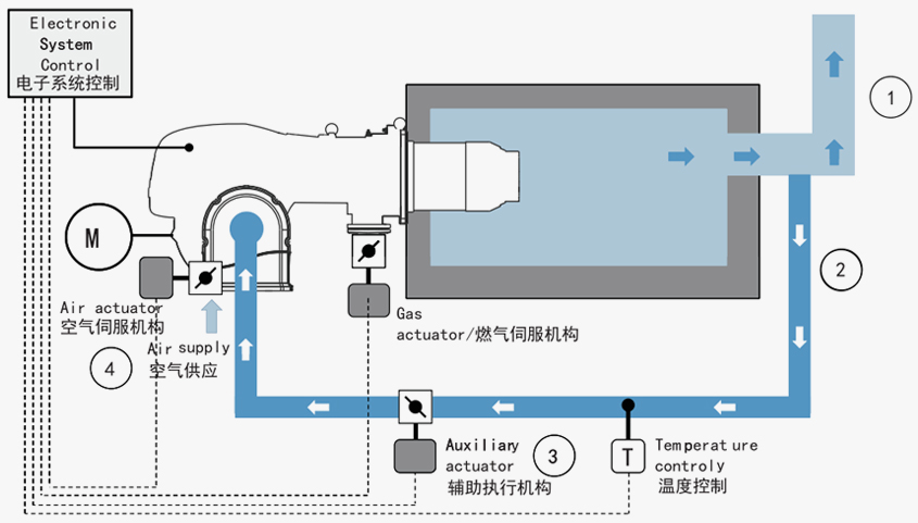 道森FGR烟气外循环燃烧,将部分烟气与空气混合后送至燃烧室助燃,混合后的助燃风可以有效降低燃烧室内温度和氧量浓度。